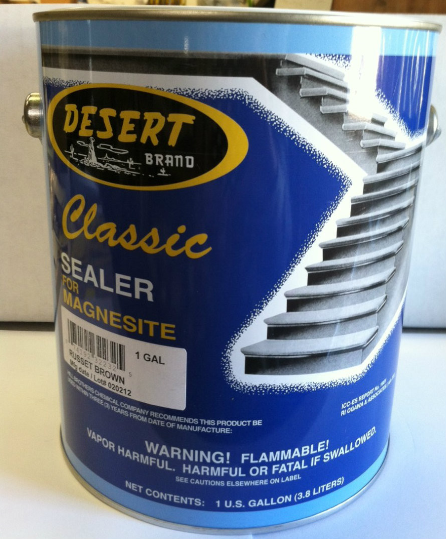 Desert Brand Classic Sealer is a durable, weather resistant, low luster finish designed specifically to protect magnesium oxychloride floors, decks, and stairs. It is designed exclusively for protecting mangesium oxychloride floors, decks, and stairs. Both clear and pigmented sealers are not approved for use upon surfaces other than magnesium oxychloride floors, decks, and stairs.
