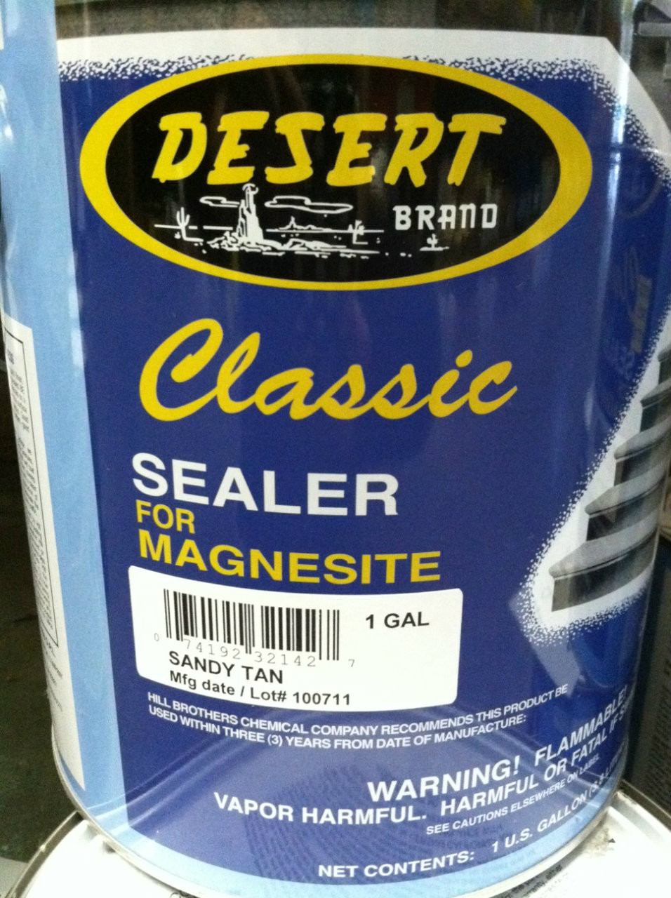 Desert Brand Classic Sealer is a durable, weather resistant, low luster finish designed specifically to protect magnesium oxychloride floors, decks, and stairs. It is designed exclusively for protecting mangesium oxychloride floors, decks, and stairs. Both clear and pigmented sealers are not approved for use upon surfaces other than magnesium oxychloride floors, decks, and stairs.